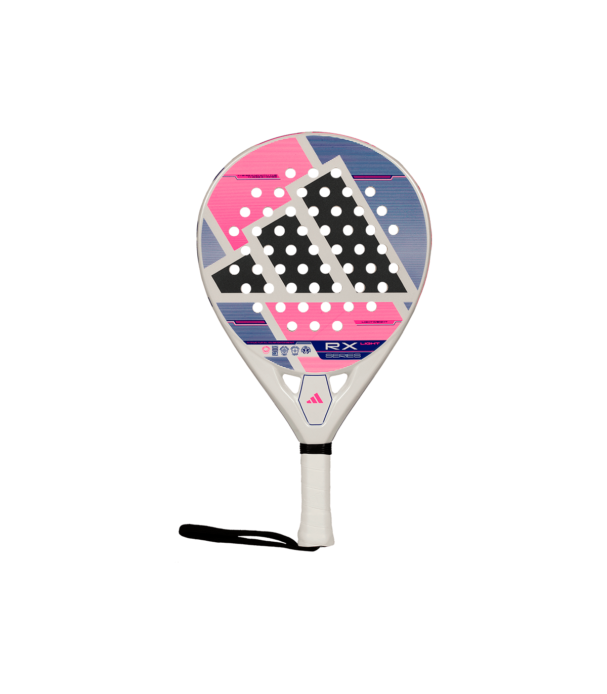 Control ligero y rigidez estructural. La pala de padel adidas RX series light está diseñada para el jugador intermedio, con Fibra de Vidrio y formato redondo para una defensa ágil. Incluye Structural Power y goma Soft Performance EVA para un confort mejorado y una estabilidad potente.